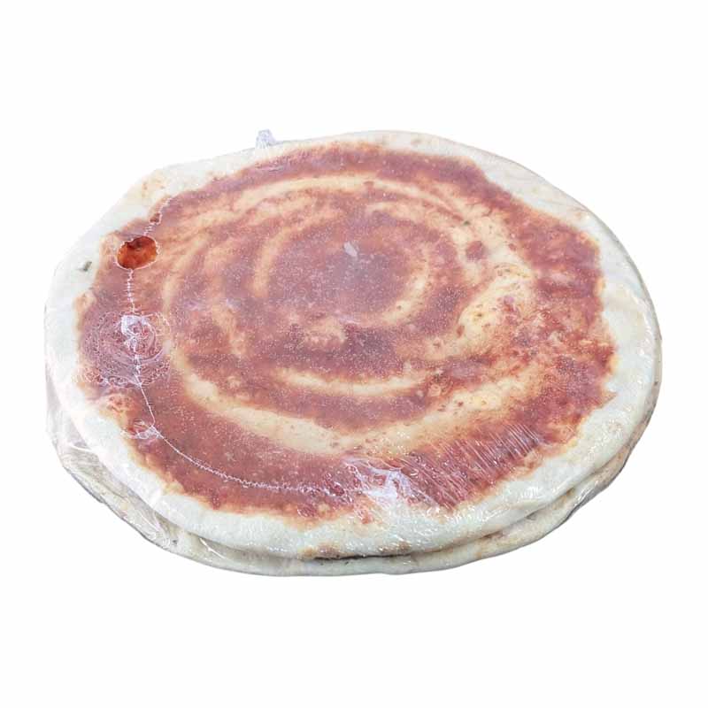 Ingredientes: Massa (farinha de TRIGO, água, farinha de TRIGO duro, azeite extra virgem, sal, melhorador de farinha, fermento, extrato de MALTE), Molho de Tomate (polpa de tomate, sal e orégãos).